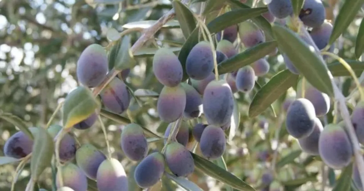 Photo of olives growing on a tree.