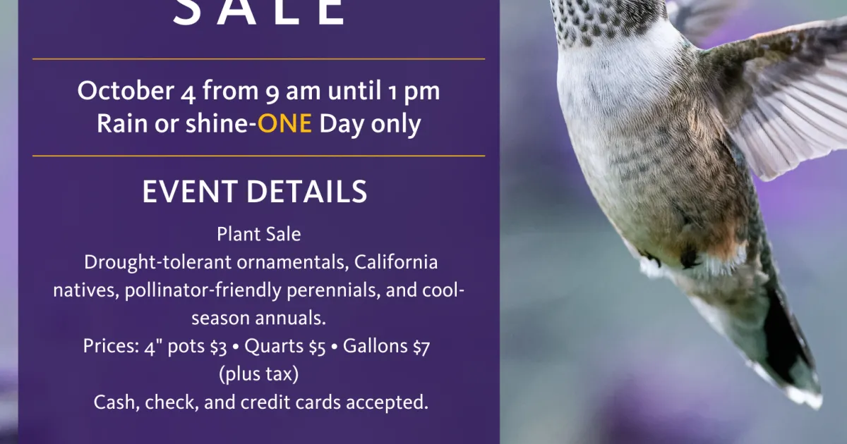The UC Master Gardeners of Yolo County 2025 fall plant sale will take place on Saturday, October 4, from 9am to 1pm, rain or shine. This year the sale will be held one day only.