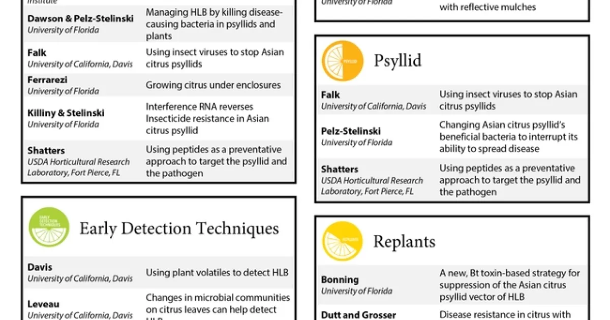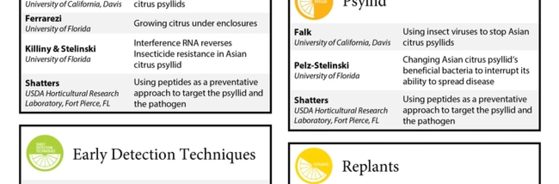 Since our last blog post, we have been busy writing up various new Research Snapshots covering a variety of projects aimed to help in the fight against Huanglongbing (HLB) the bacterial disease that is devastating US citrus and the Asian citrus psyllid (ACP) that vectors it Examples of our latest Snapshots include: