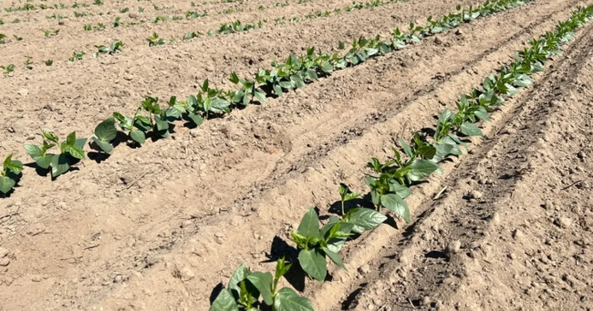 We evaluated blackeye bean varieties in a commercial field in Stanislaus County. The season began with cool and wet spring conditions, which lasted through the month of June and delayed planting. Seven varieties from the University of California blackeye breeding program were planted on July 7th. The varieties were grown on a Hanford sandy loam, and the soil temperature was approximately 75°F at the time of planting. Each variety was planted across six rows on 30-inch spacing, on a row length of approximately 275 feet. The seeding rate was 40 pounds per acre. This was a non-replicated evaluation due to a limitation in seed; therefore, no statistical analysis is presented.