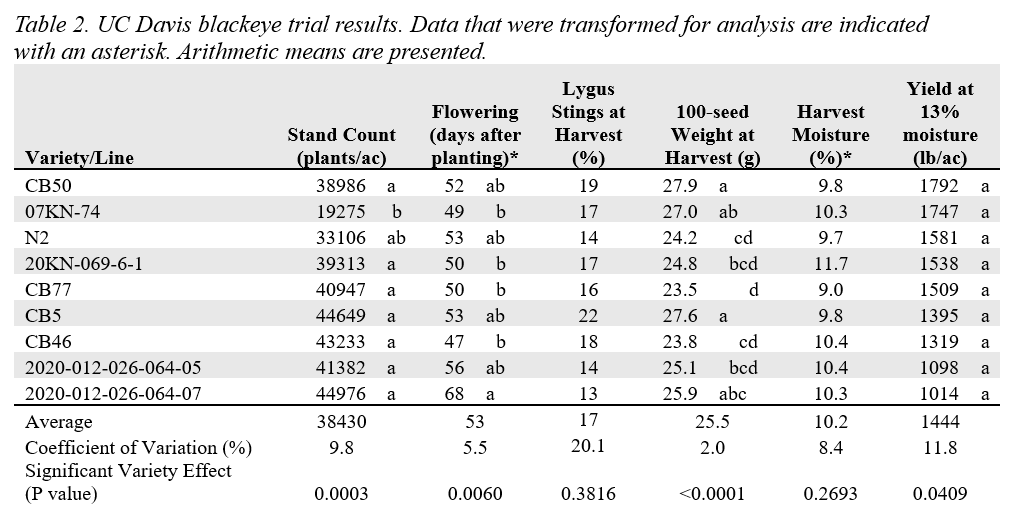 As we embark on a new season, we want to share the results from the 2024 UC Davis blackeye variety trial. We will continue variety evaluations in 2025.