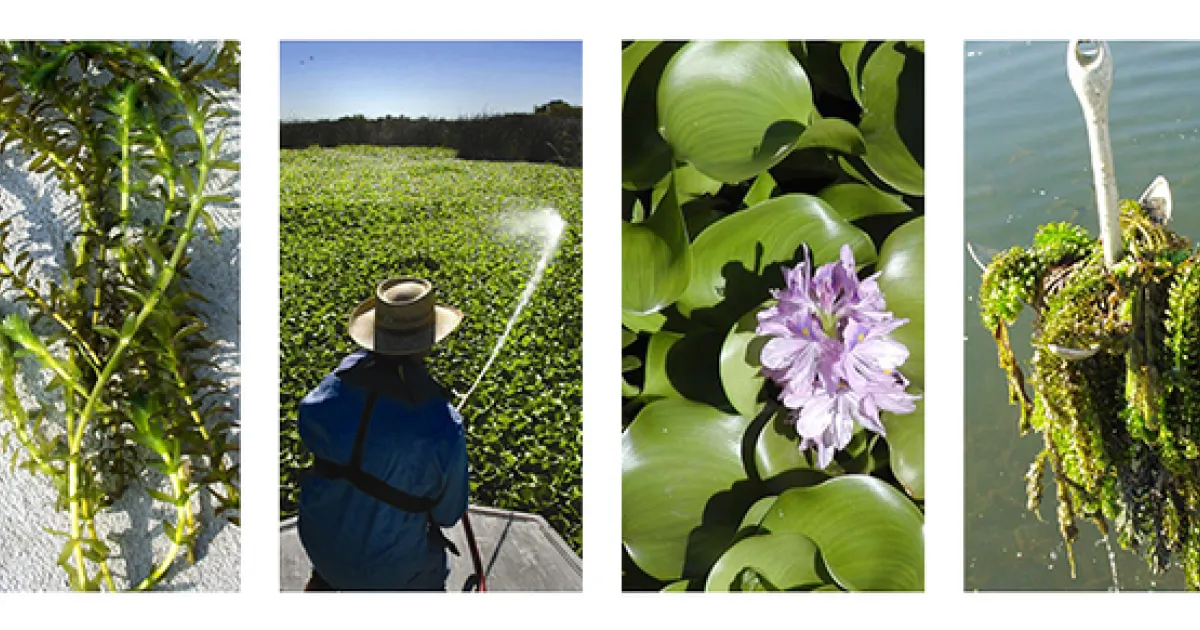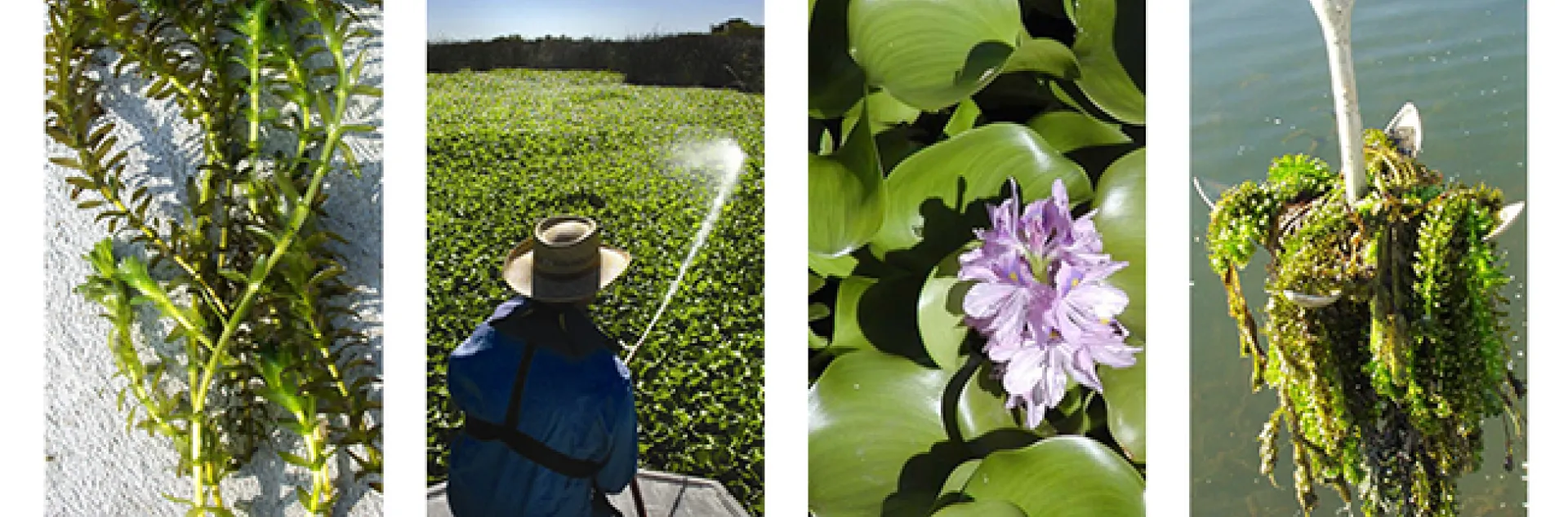 According to the Division, water hyacinth was introduced into the Delta from South America over 100 years ago. It can be considered an attractive plant for its purple flowers, but its floating nature and potential to double in size every ten days under warm weather conditions makes it a difficult plant to keep under control in the Delta. It can impact recreation and commerce because mats of it can grow up to six feet thick, restricting boat traffic, and it can impact agricultural operations by clogging intake pumps. It also impacts the Delta ecosystem by out-competing native plants, blocking light into the water, and reducing dissolved oxygen.