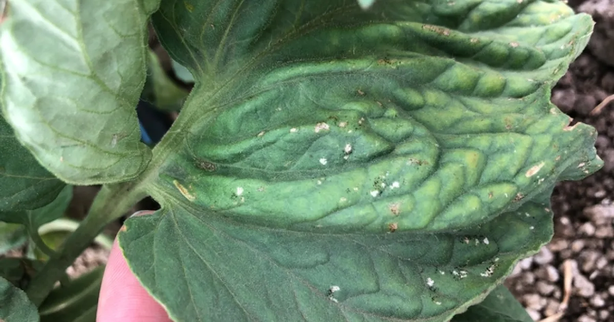 Tomato spotted wilt virus (TSWV), transmitted by western flower thrips (Frankliniella occidentalis), is widespread in Yolo/Solano/Sacramento county and can cause severe damage to fresh market tomatoes and peppers. Using a piercing-sucking mouthpart, thrips damage appears as small white/silver/grey patches (see photo). To confirm the presence of thrips, lightly shake a plant onto your hand or a dark surface and use a hand lens to look for the insect, or take a hand lens to the leaf damage and check for thrips. Young plants infected with TSWV are stunted with leaf bronzing (see photo), while mature plants have green and red fruit that are bumpy and deformed and typically show diagnostic ringspots (often concentric in green fruits). TSWV diagnosis can be made onsite using an ImmunoStrip, available from your local farm advisor.