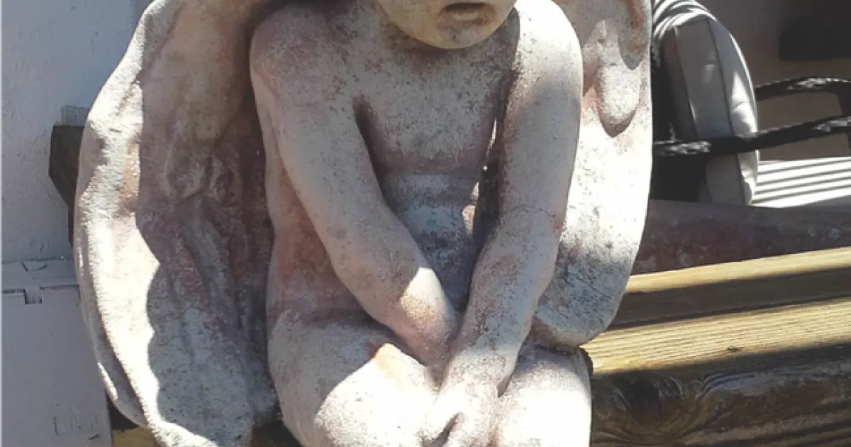 Now that I've written all this down, I'm a little embarrassed.  Maybe my husband won't notice that I just brought home a geranium plant that someone had thrown, pot and all, in the gutter alongside the sidewalk. I'll make sure to water it once I have repotted the poor little thing in one of those saved terracotta pots.  Hmm, maybe I'll move that craft fair angel to another location so that the rescued geranium can sit on the deck railing ...