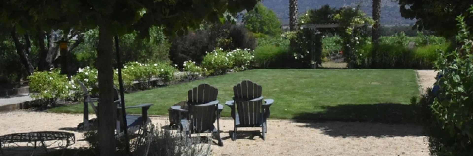 Family gathering areaBeing a UC Master Gardener of Napa County has many joys in volunteering to educate home gardeners. In between volunteering, our members decided to tour each others gardens during spring and summer months. Besides being fun and sharing camaraderie, we learn new things to pass along to others. Let's take a look at the last two gardens we visited this season.