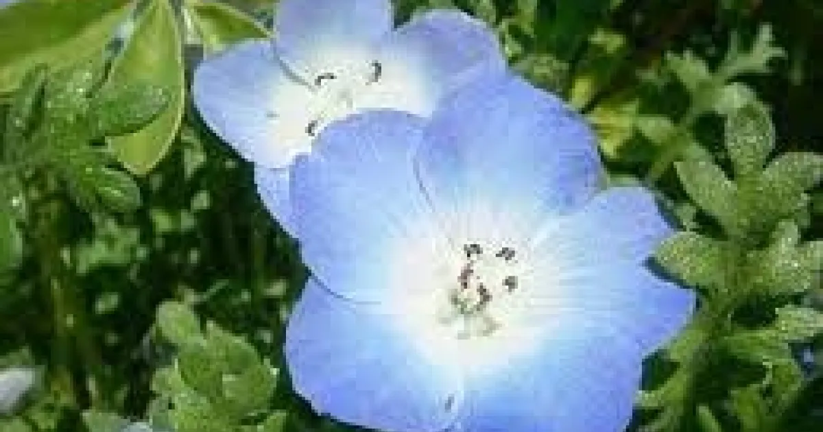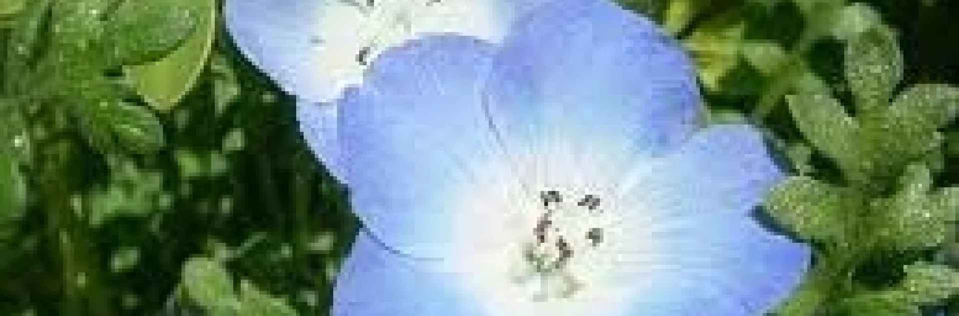 • Baby blue eyes Nemophila menziesii is a low growing annual with low water needs. It has stunning sky blue flowers that attract native bees, including mason bees (Osmia spp.); tolerates moderate shade and moisture