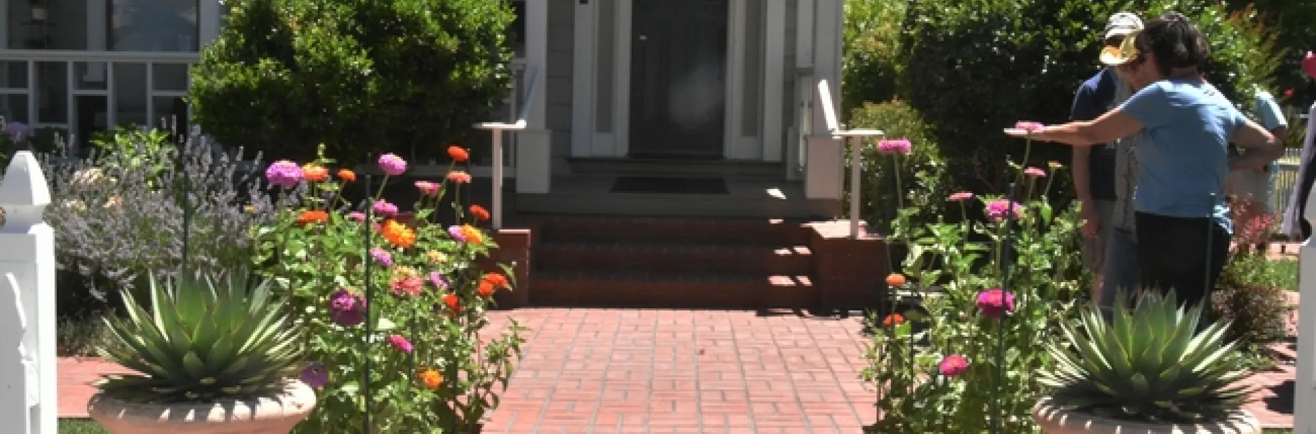 The tour of the garden in old town Napa started at the front entry path greeting us with colorful, lively zinnias before leading us further into lavender and hydrangeas on this gorgeously renovated, historic 1871 property.