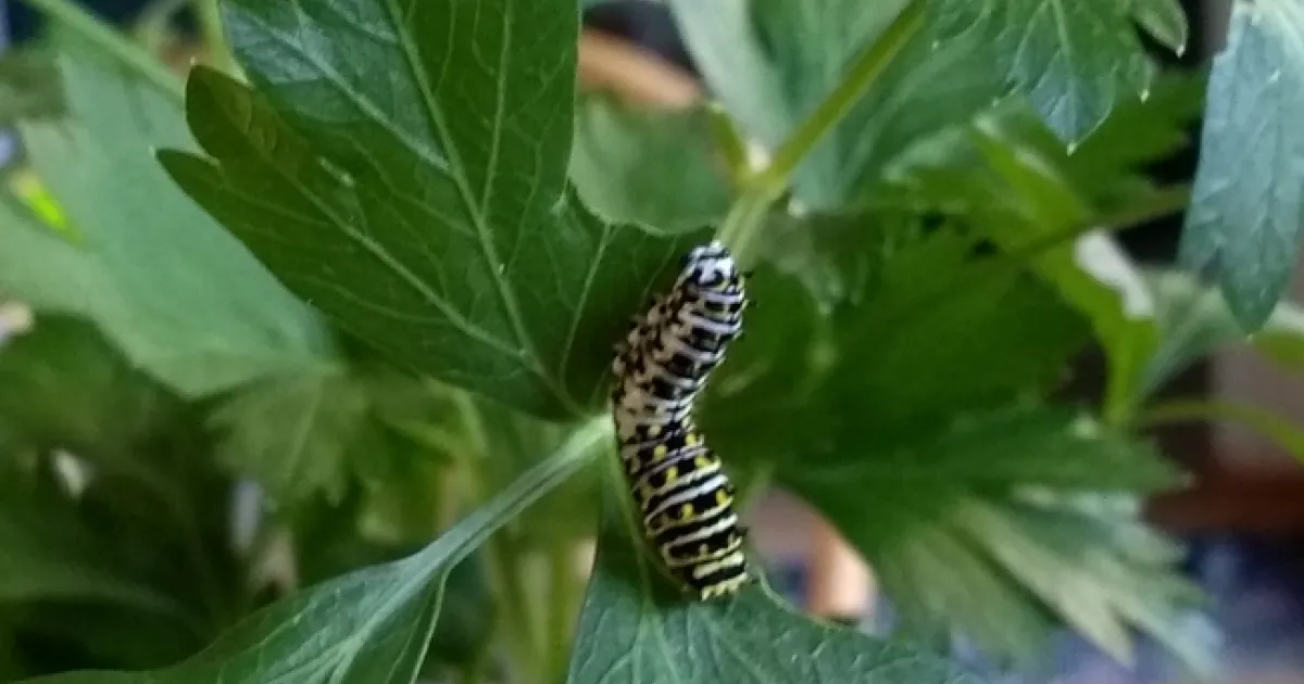 Photo credits: Pat Hitchcock caterpillar; butterfly Calibas / CC BY-SA