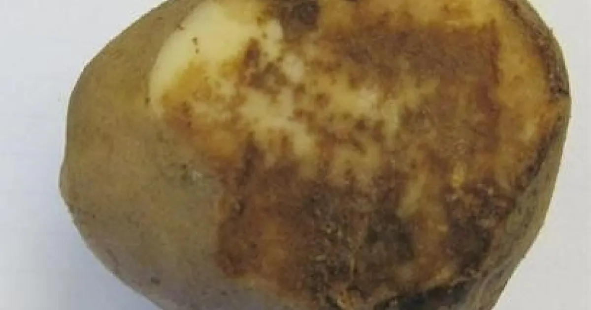 Prior to the 19th century, Ireland's farmers primarily grew grains such as wheat, oats, and barley. However, by the 1800s, due to a rapidly growing rural population, the Irish began to rely on just one crop – the “Irish Lumper,” a variety of white potato (Solanum tuberosum). It was easy to grow on small farms, even in the worst soil, and provided enough sustenance for impoverished tenant farmers and their families. In the mid-1840s a blight struck potato plants all over Ireland. Leaves would wither with shocking speed and when the tubers were dug up for harvest, they were found to be shrunken, mushy, and inedible.