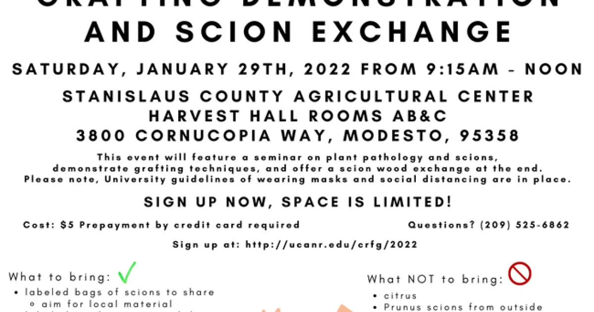 Additionally, an in-person opportunity is being offered for Saturday, January 29, 2022 from 9:15 a.m. to noon at the Agricultural Center, Harvest Hall, in Modesto. Here is the class flyer. Space is limited, please sign up now at http://ucanr.edu/crfg/2022
