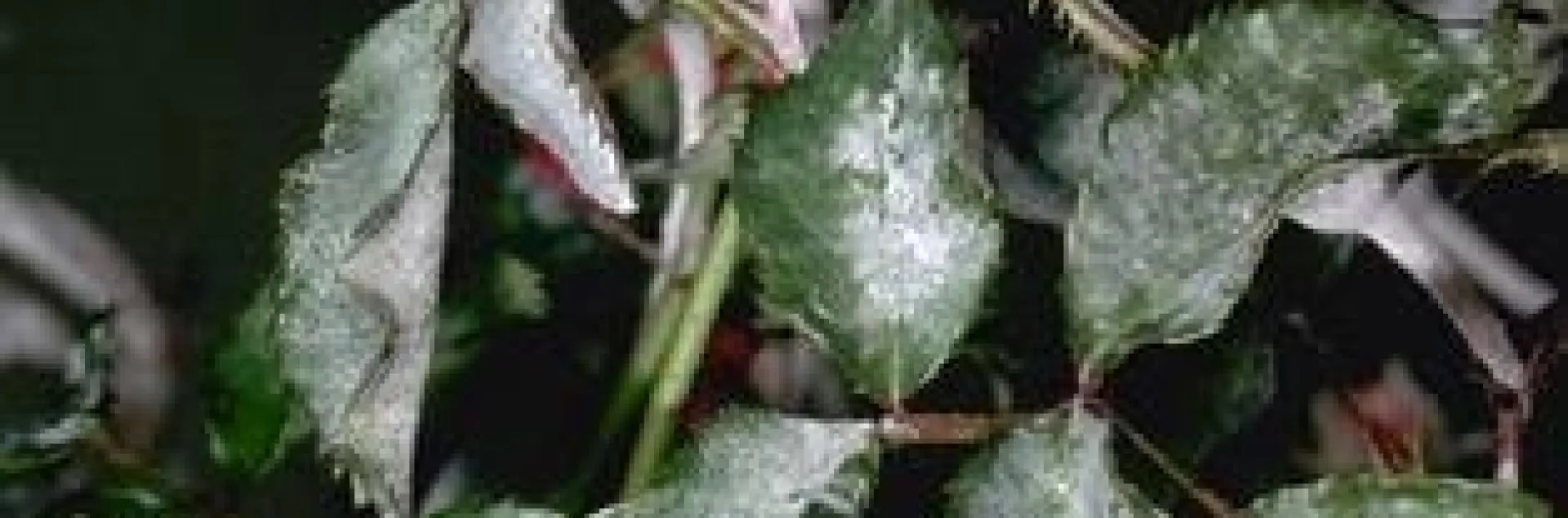 Powdery mildew is caused by several fungi and affects a wide variety of plants with different species affecting ornamentals, fruits and berries, and vegetables. White powdery spots spread throughout the surface of leaves giving the appearance they have been sprinkled with flour. Leaves become twisted and distorted, turning brown or yellow, and drop off. It thrives in shady areas of warm, dry Mediterranean-type climates, thus is more prevalent than many other diseases in our dry summer and fall seasons. The fungi spores are carried by wind to new hosts. Plants affected include roses, crape myrtle, dogwood, peach, apple, grapes, squash, cucumber, cantaloupe, and beans.
