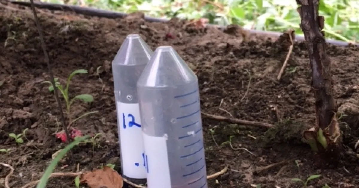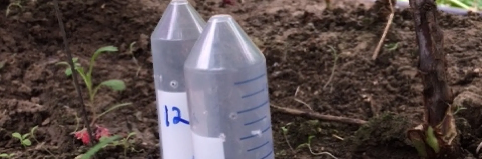 Following the lead of a group of scientists out of Maine on blueberry, my research assistant Monise and I are going to attempt to solve this issue once and for all. We first confirm that a fallen fruit has at least one larvae in it, and then covering each of these with a centrifuge tube with airholes punched in the sides, taking care to push the tube about an inch into the ground (see picture below). Since we are engaged in science and not a quest to confirm our own bias, we accompany these tubes with an equal number of tubes without fruit in them. After about a week, Monise will recover these tubes, separate the fruit from soil and look in both for the pupae.