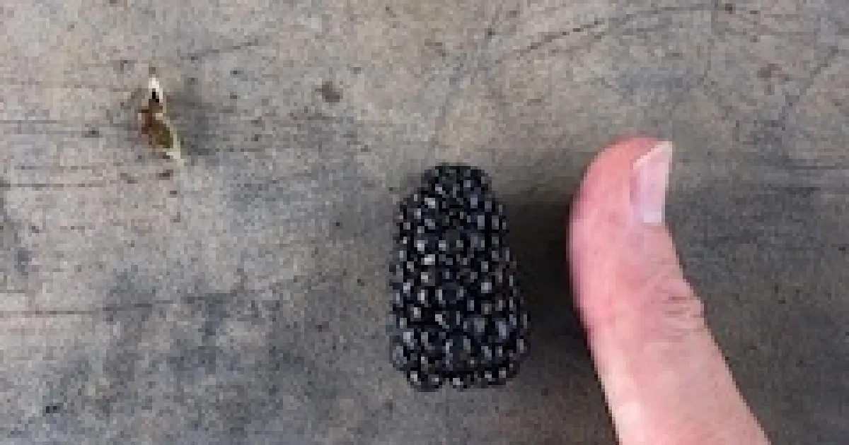 Just a few shots below of some unusually large blackberries we are taking out of study looking at fertility modification and tunnel plastic management to reduce "reversion" in this crop (more to follow - it's an interesting study). Variety is PrimeArk 45 and most of the big ones are coming out of one treatment.