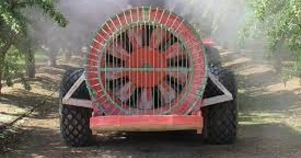Airblast sprayers are the most used equipment for pesticide application in perennial specialty crops in the San Joaquin Valley and across California. The application involves applying spray from both sides of the sprayer onto tree or vine canopies, as an operator drives the sprayer between tree/vine rows. Airblast sprayers use a fan to produce air intended to carry the spray to the target. The air also helps the spray droplets to penetrate the target canopies to deposit deep inside the canopy.