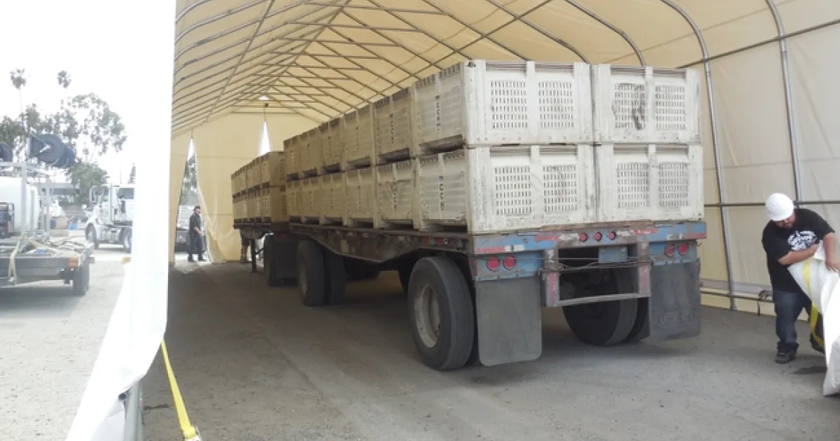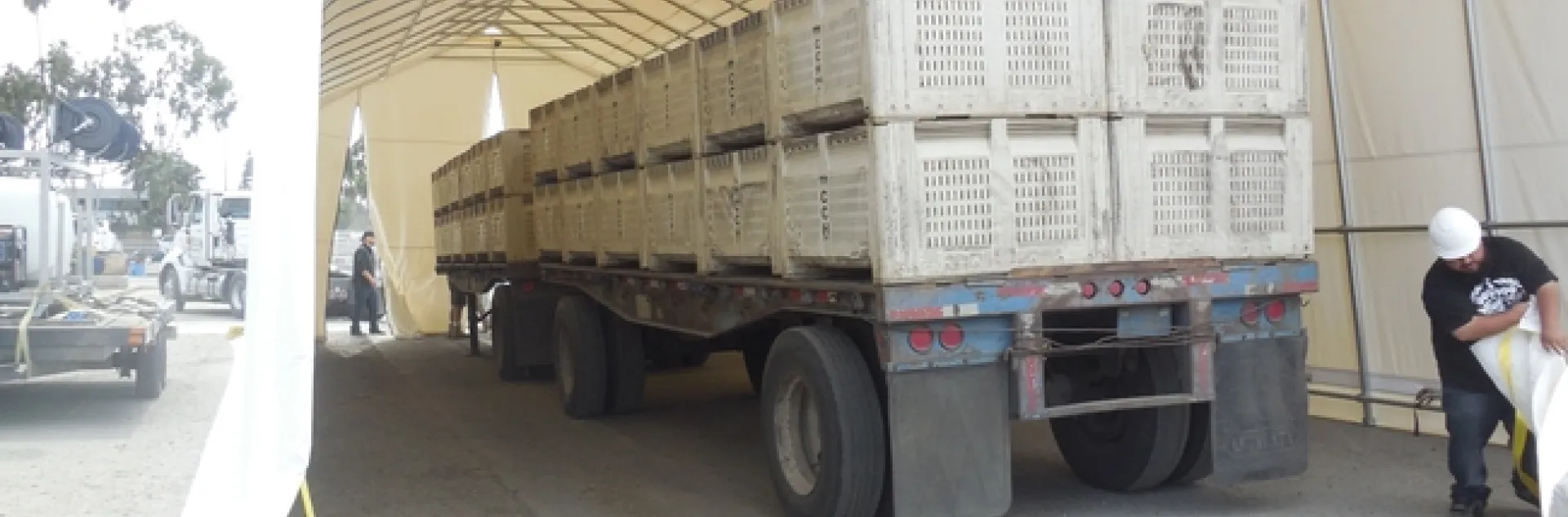 The demonstration will involve placing ACP throughout t he citrus load in within the bins. Once the tent is sealed the fogger will be turned on (sit for 2 hr) and viles with the ACP will be relocated to show the percent mortality. Previous run of the experiment have been successful.