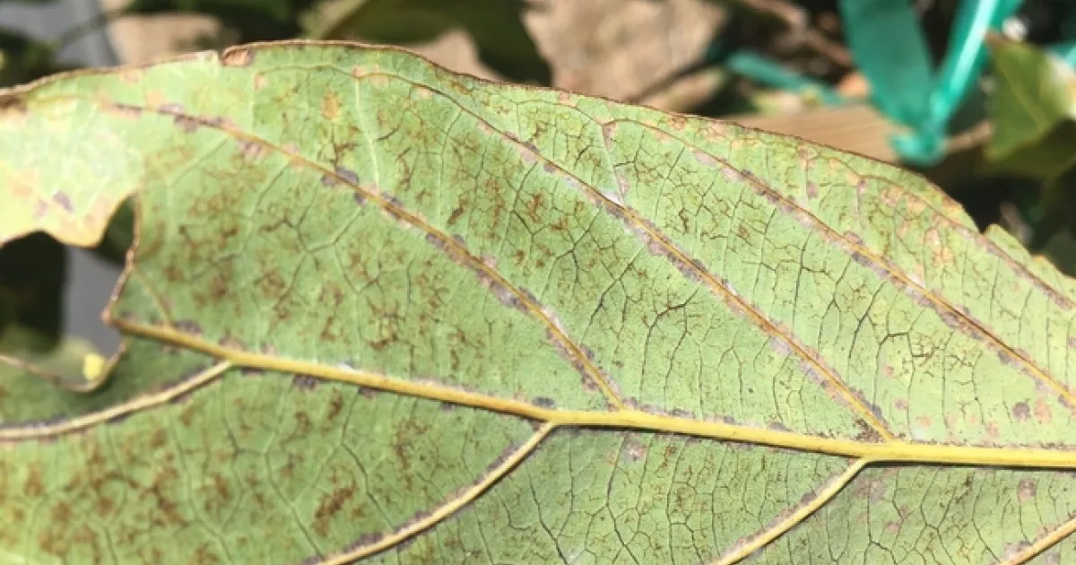 Persea mite colonies on underside of leaf