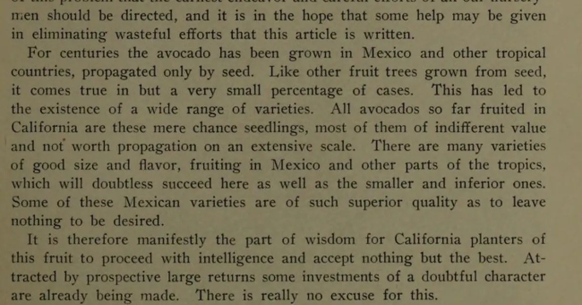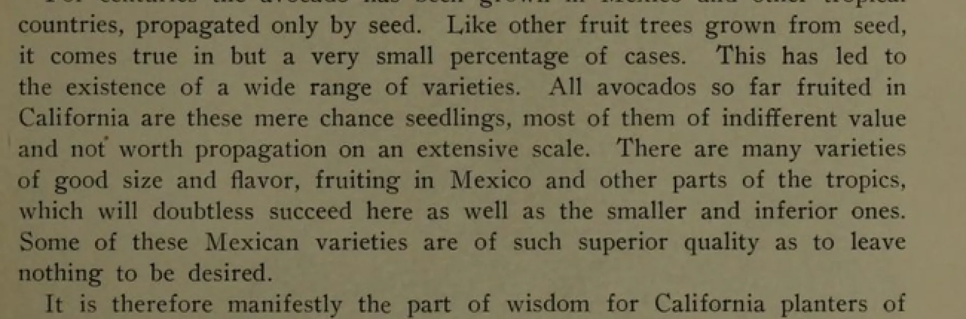 In 1911, the avocado was a relatively new crop in Southern California and the great USDA plant explorer Wilson Popenoe (pronounced POP e Noe according to Jack Shepherd), describes avocado culture and its problems