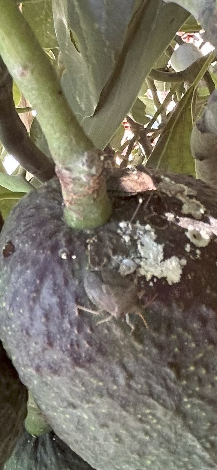 Brown Marmorated Stink Bug showed up in Santa Barbara and Ventura Counties about 12 years ago. It had been roaming around LA and Orange Counties before that. There was a small outbreak on avocados at the time, but it was mainly seen on a lot of other plant species, like tomatoes. We have not seen much of the bug since the first introduction, but this summer, it has popped up on avocado in the Santa Paula area. It’s probably present in other parts of the county, but unless you are going out to harvest, you may not notice it. Once the fruit is off the tree, the bug seems to be less interested in the crop. It can go to small fruit, as well as large, though.