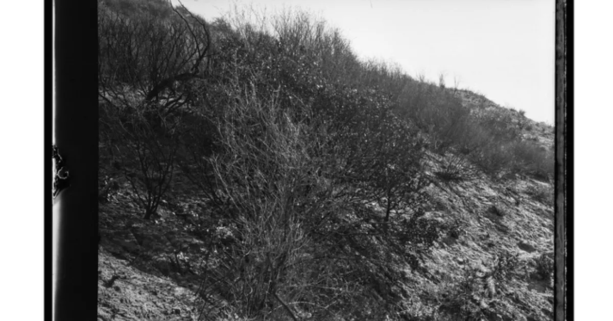 image: Work on fire management was being done in Ventura long ago. Fire is still being studied by UC and the Ventura office. Area on the left was burned and that on the right was not burned, February 24, 1931.
