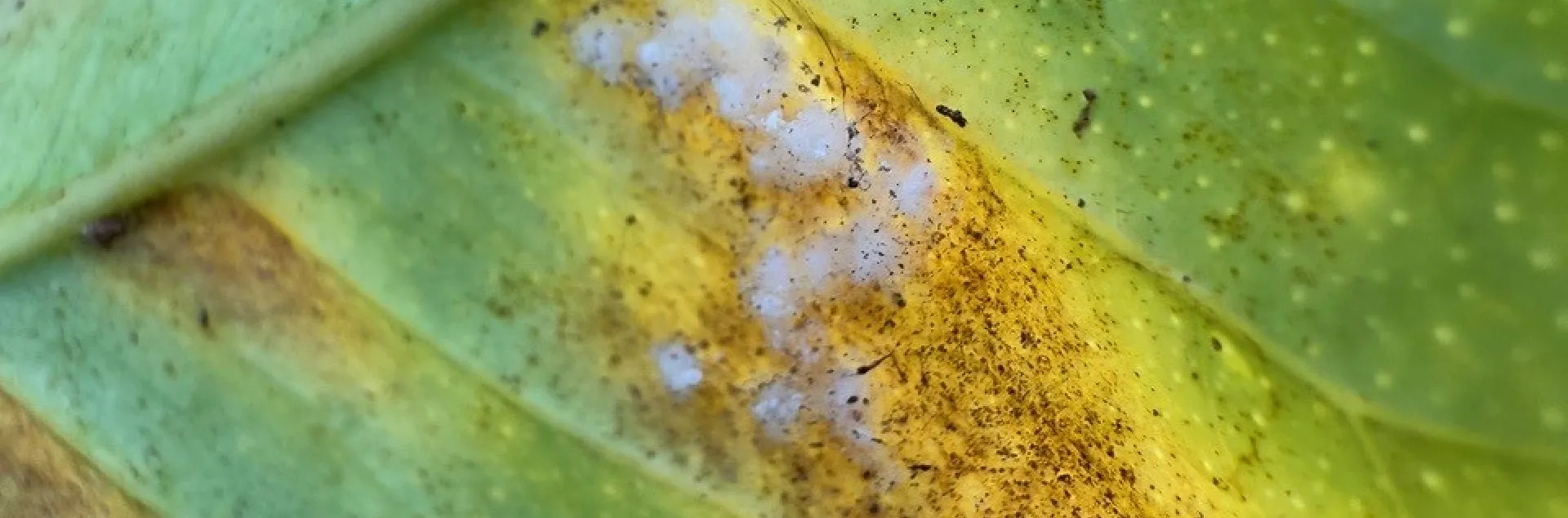 Whiteflies suck phloem sap, which in some cases can cause leaves to wilt and drop when there are high numbers of whiteflies. However, the primary concern with whiteflies is the honeydew they produce. Honeydew excreted by nymphs and adults collects dust and supports the growth of sooty mold; large infestations blacken entire trees, including fruit, as well as attract ants, which interfere with the biological control of whiteflies and other pests. The sooty mold can also affect tree yields by reducing photosynthesis and requiring extra handling time for cleaning.