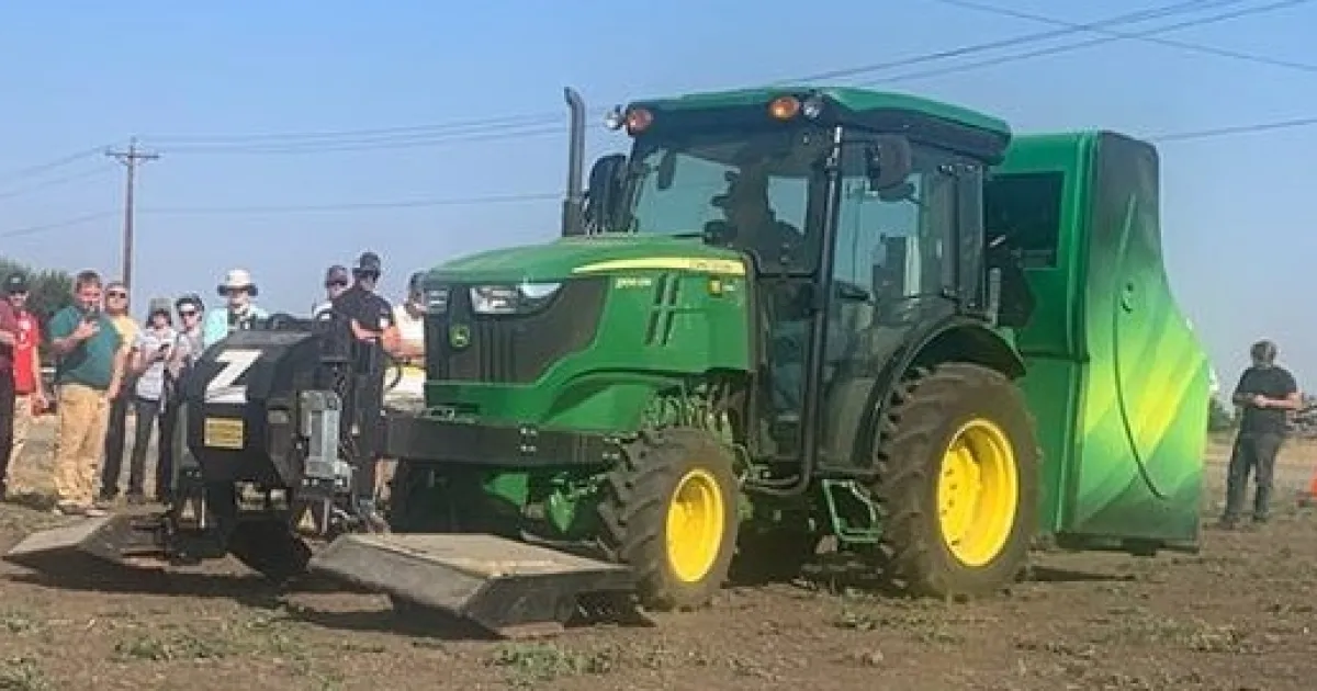 A Zasso electric weed control unit mounted on a tractor demonstrates its capabilities.