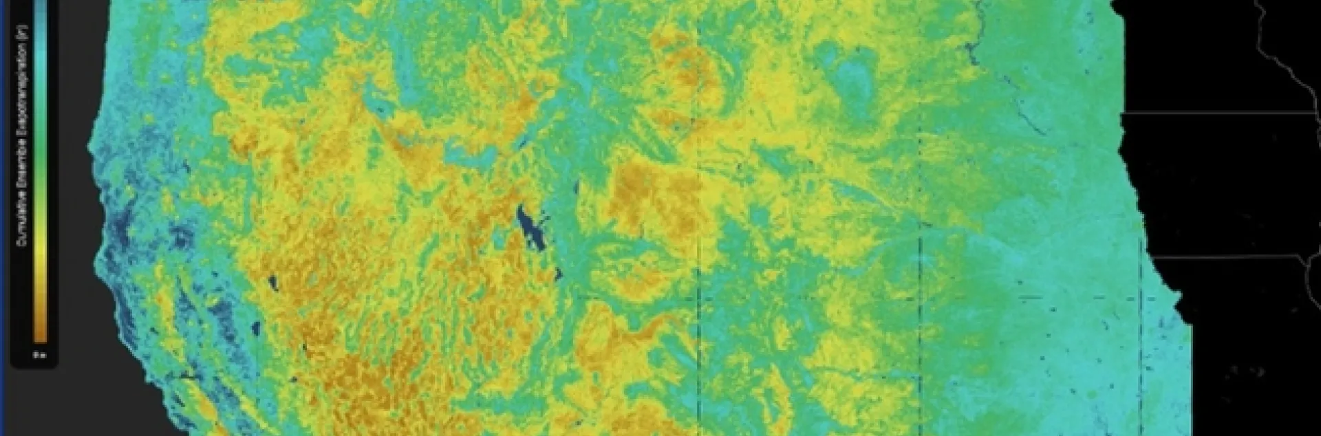 A screen dump of cumulative ET (inch) for the entire western states in 2021. You may zoom on the OpenET map to find your orchard for a specific time (daily, monthly, yearly) and explore the data.