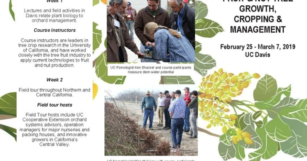 The University of California Cooperative Extension (UCCE) and University of California, Davis (UCD) Plant Sciences department are offering the annual two-week course from February 25th through March 7st, 2019 at UC Davis, CA.