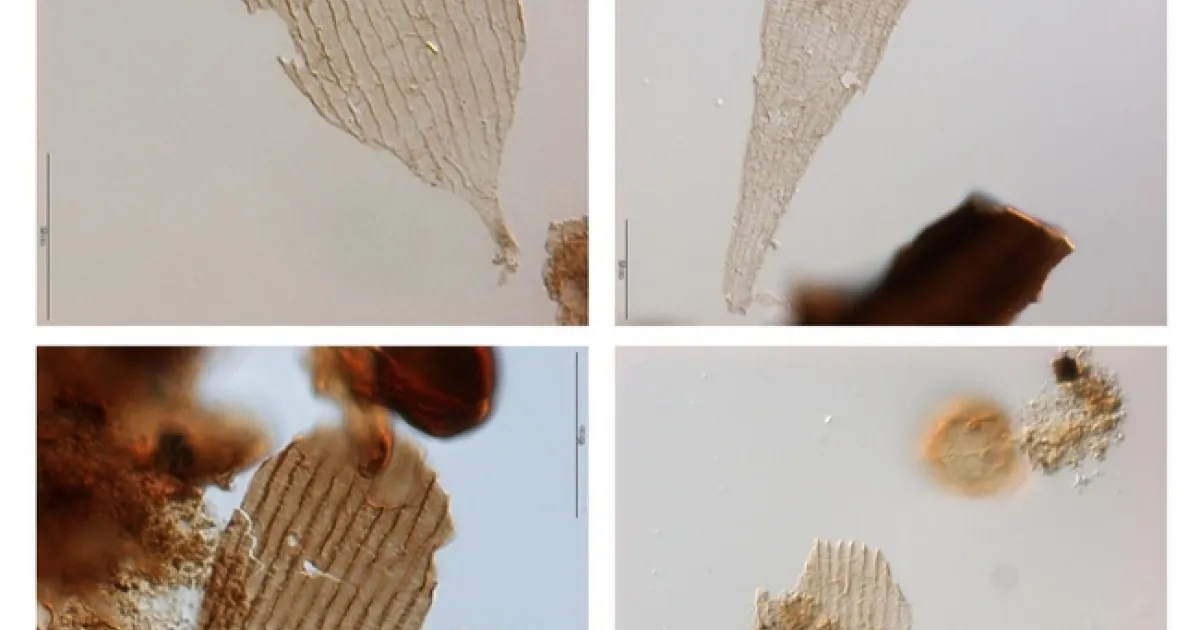 In 2012, Strother was examining the sample slides looking at algae, fungi and soil microorganisms. "These are organic extractions after you've dissolved away the minerals in the samples and you're looking at anything that is organic. There are pollen and spores. There are other things. Pieces of plant cuticles. Resistant organic material. Insect legs. Ninety-nine percent is plant debris.