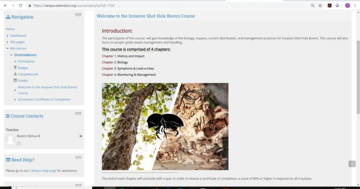 In terms of education and outreach, an area where Cooperative Extension in Ventura, LA, Orange, and San Diego counties have led, we're excited to announce the release of a new on-line training course. Available through our website, https://ucanr.edu/sites/pshb/, the course is actually served by the eXtension on-line learning platform (and users will need to create a free account). The course consists of 4 chapters including history and impacts, biology, symptoms and look-alike pests, and monitoring and management. While it can't fully replace a field training, it can be a good way to familiarize new staff to the issues.
