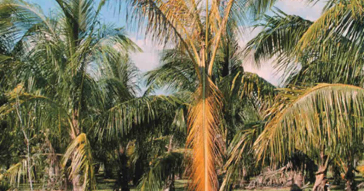 Foliar yellowing symptoms of Lethal Yellows on Coconut palm. Photo credit: NA Harrison