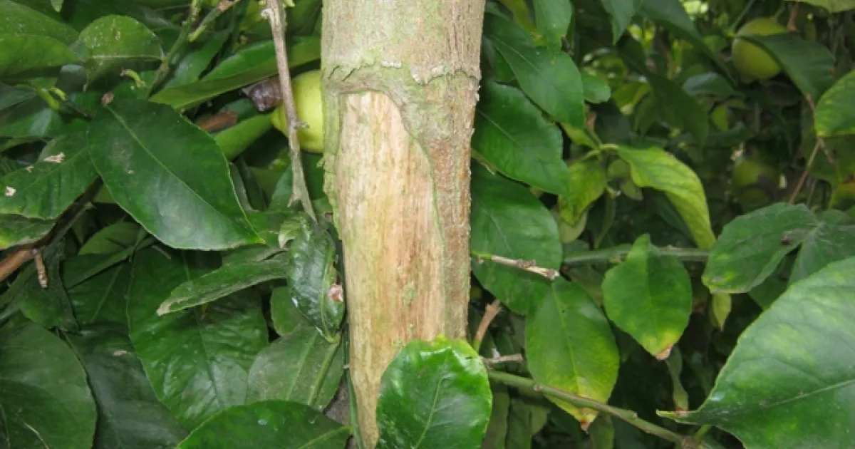 Along the mighty Santa Clara River are planted many lemons and once upon a time many Valencia orange trees. There's lots of wild life along the river which causes some issues with food safety. One of the many creatures are rats and when things dry up they start foraging further and further for food. They really like citrus and can cause a lot of damage. What I first thought was sun burn damage turned out to be rat feeding on the bark and cambium of these lemon trees. The damage wasn't in the right position to be sunburn damage. Inside the canopy, often on the north facing branch.