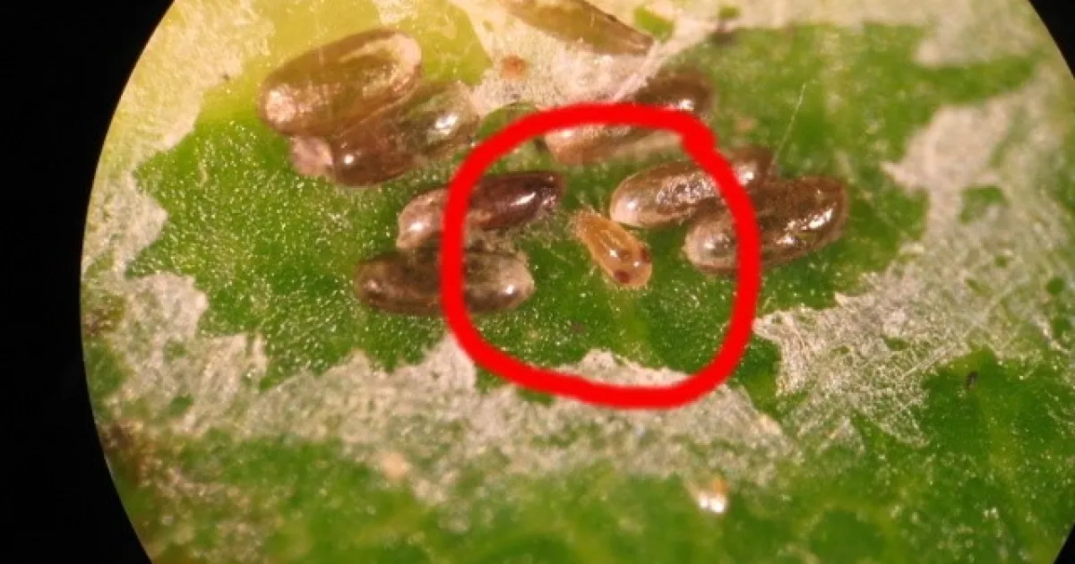 The red circled mite is the one we are talking about here. The structures next to it are some egg cases of another animal. The red dots are called opisthonotal glands which produce pheromones, the purpose of which is not clear.