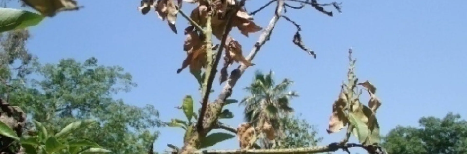 Branch and trunk canker on avocado was formerly attributed to Dothiorella gregaria, hence the name Dothiorella canker. So far Botryopshaeria dothidea (anamorph: Fusicoccum aesculi) is the only known species causing Dothiorella canker on avocado in California. Symptoms observed on avocado with Dothiorella canker include shoot blight and dieback, leaf scorch, fruit rot, and cankers on branches and bark.