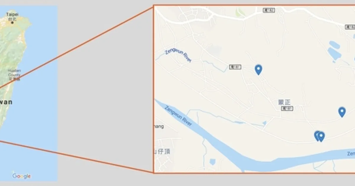 Map: collection sites of PSHB beetle-infested avocado logs from Tainan City, Taiwan.