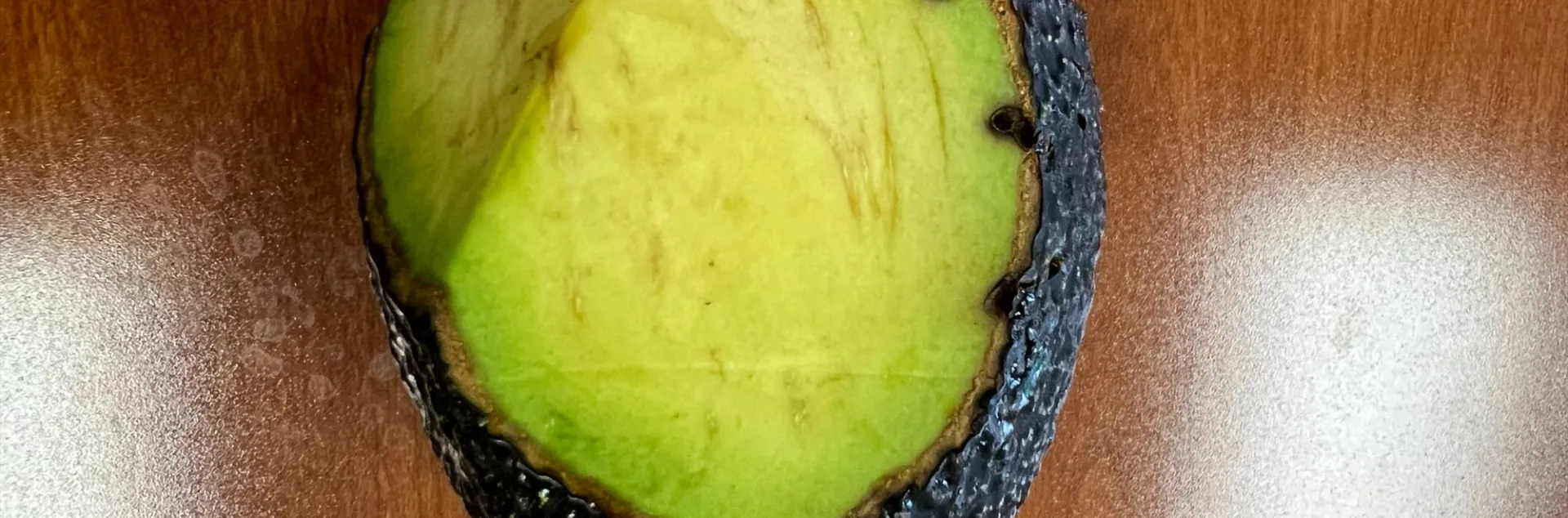 It is Pagiocerus frontalis, a bark beetle in the family Curculionidae that loves to reproduce in avocacdo and other Lauraceae fruits. It also reproduces in corn (actually prior to 2019 we didn't even know it fed on avocado, it was thought to be a corn issue). It is native to our region and throughout southern US and South and Central America. It likes to reproduce on the avocado seed at the center of the fruit. It can complete it's entire lifecycle within the fruit. Generally attacks fallen fruit or fruit near to the ground.