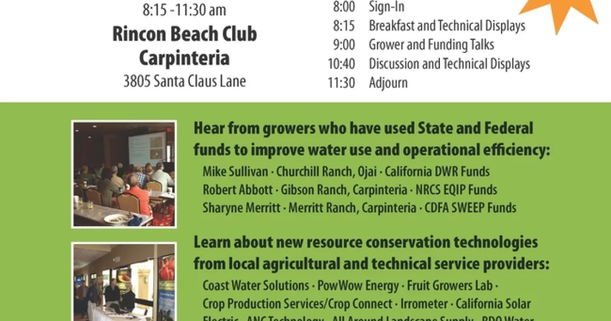 Hear from growers who have used State and Federal funds to improve water use and operational efficiency and lern about new resouce conservation technologies from local agricultural and technical service providers.