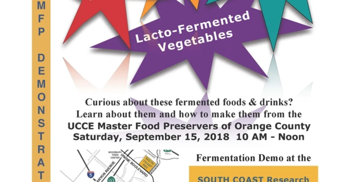 Kimchi? Kombucha? Make my own yogurt? YES, you can! Join the UCCE Master Food Preservers of Orange County on Saturday, September 15th from 10 am to Noon for a free demonstration on how to make them.