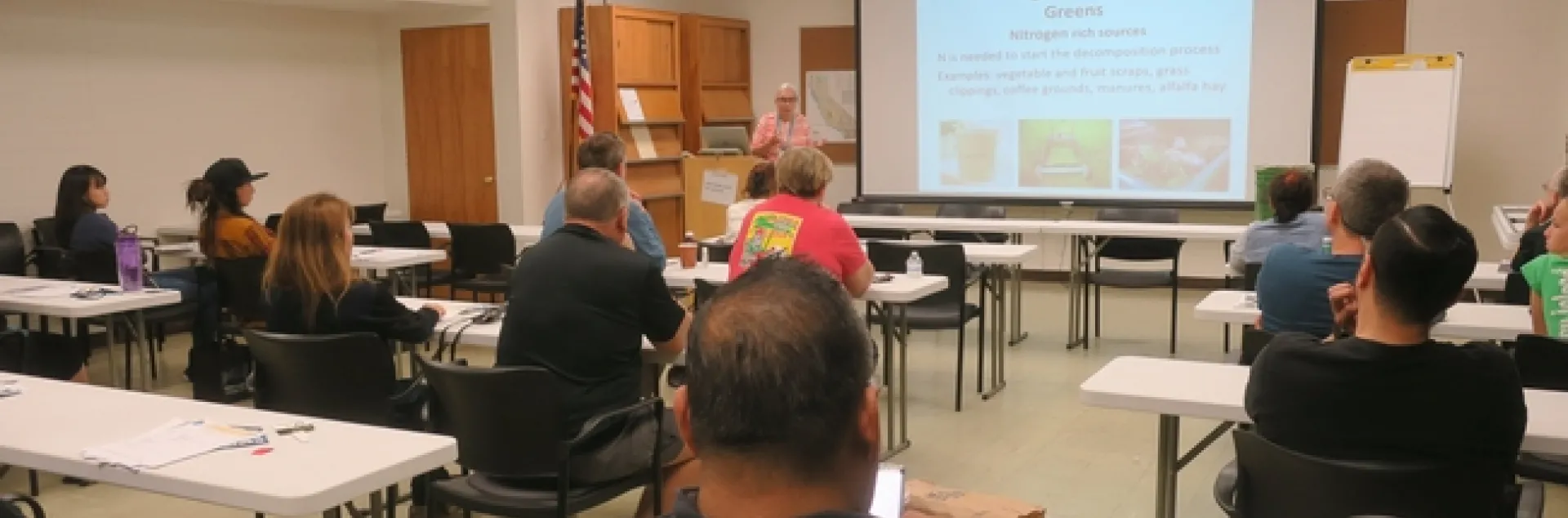 Eager to learn how one might create ‘black gold', workshop participants gave their full attention to presenter Becky Touchette, UCCE Orange County Master Gardener, as she provided them with the knowledge to create the perfect compost set-up for their landscape – big or small. The group learned all of the basics: why compost, how to make a bin, what materials to use, bin maintenance, site placement, and the best uses for finished compost.