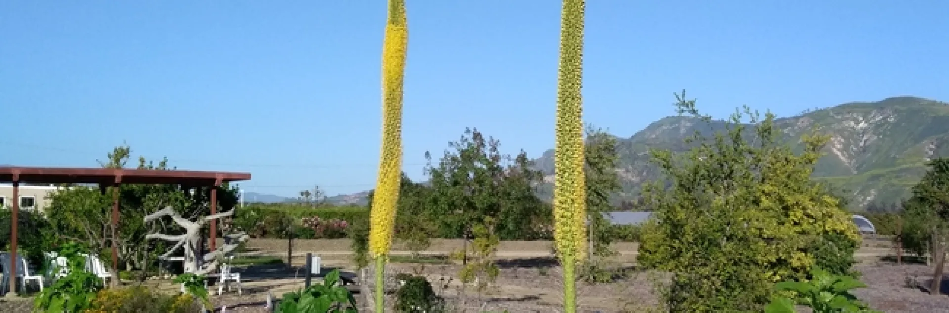 The flowering spikes of the octopus agave (Agave vilmoriniana), currently in bloom in the Master Gardener Demonstration Garden at HAREC in Santa Paula, are seriously impressive at more than 12 feet tall. Octopus agave is a drought-tolerant plant native to the Mexican desert where it grows on rocky ground. The gray-green smooth, twisting leaves with flexible spikes at the tips give the plant an octopus-like appearance. Like other agaves, it is monocarpic, flowering only once in its life before it dies.