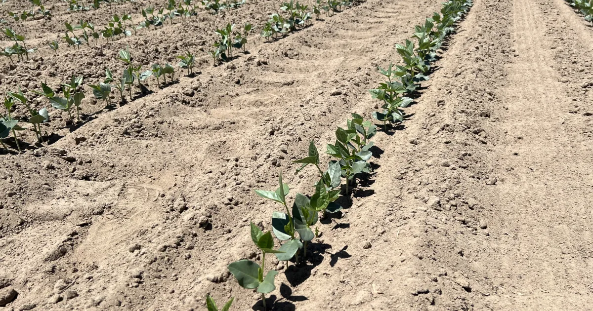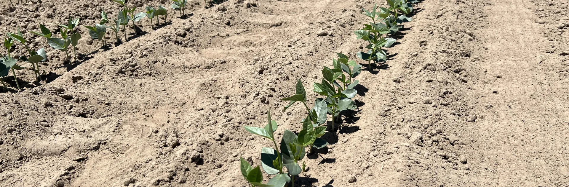 We evaluated blackeye bean varieties in a commercial field in Stanislaus County. Seven varieties from the University of California blackeye breeding program were planted on July 1st. The soil type at the trial location was well-drained (Dinuba and Hanford sandy loams, Tujunga loamy sand), and the soil temperature was approximately 74°F at the time of planting. Each variety was planted across twelve 30-inch beds, on a row length of approximately 450 feet. The seeding rate was 40 pounds per acre. This was a non-replicated evaluation due to a limitation in seed; therefore, no statistical analysis is presented.