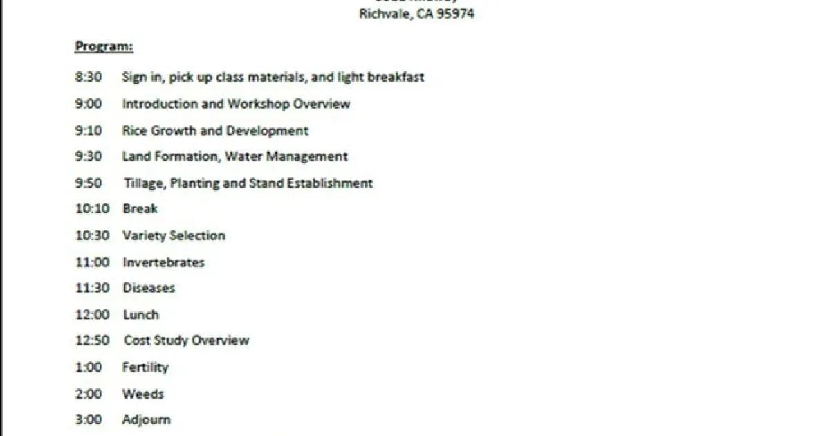 Enroll on-line at http://ucanr.edu/2013riceworkshop.