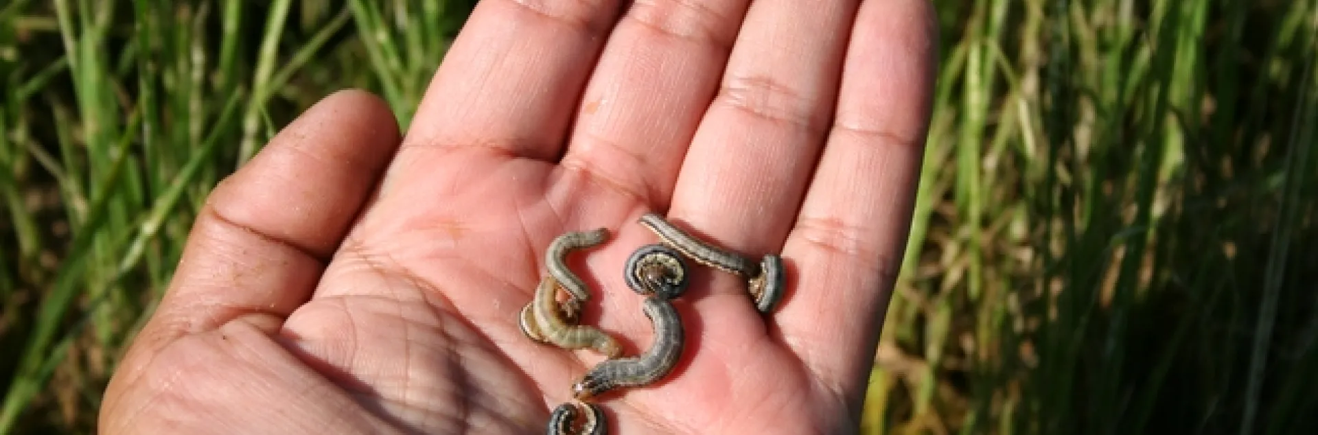 Fifth instar armyworms in Glenn County field, 21 June 2017.
