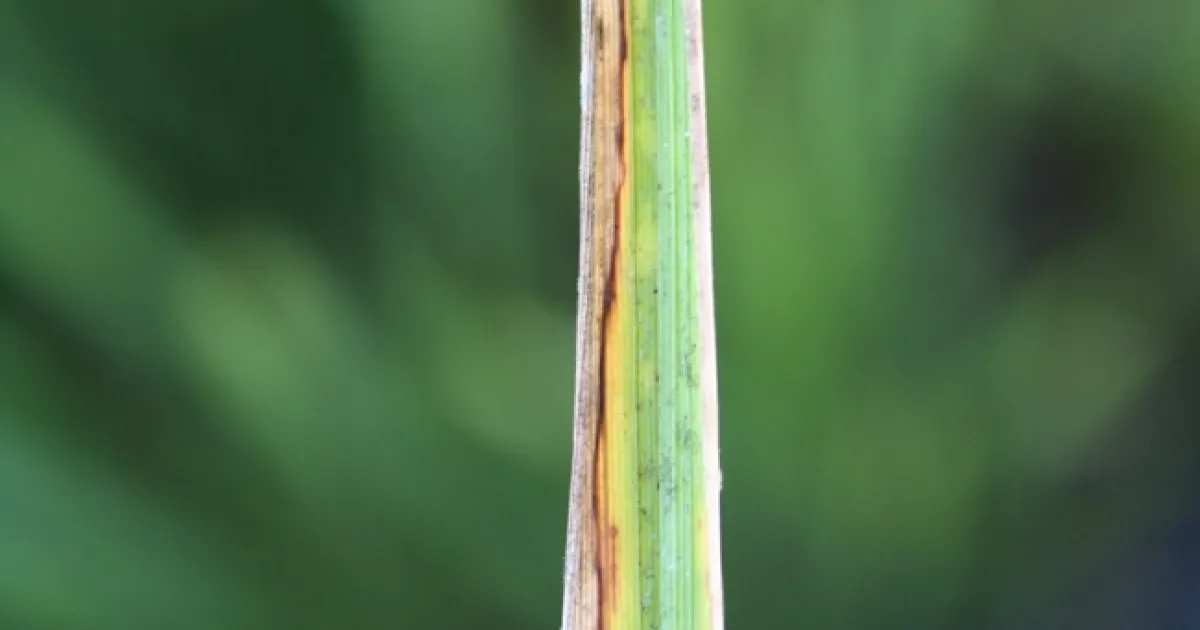 According to Paul, changes in environmental conditions may be why the lesions did not look like your typical blast lesions. When conditions are favorable, the fungus' spores germinate and infect the tissue. But if conditions change and become unfavorable for the fungus growth and sporulation, the fungus dies and the tissue then has that burned look instead of the white-gray powdery look.