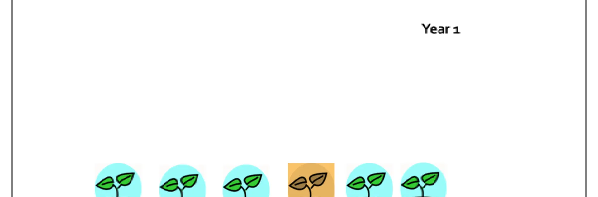 Year 3, Beginning of season: The redstem population emerges from the soil at the beginning of the season. There are even more herbicide resistant plants than the previous 2 years, as the proportion of herbicide resistant seed in the soil has increased.
