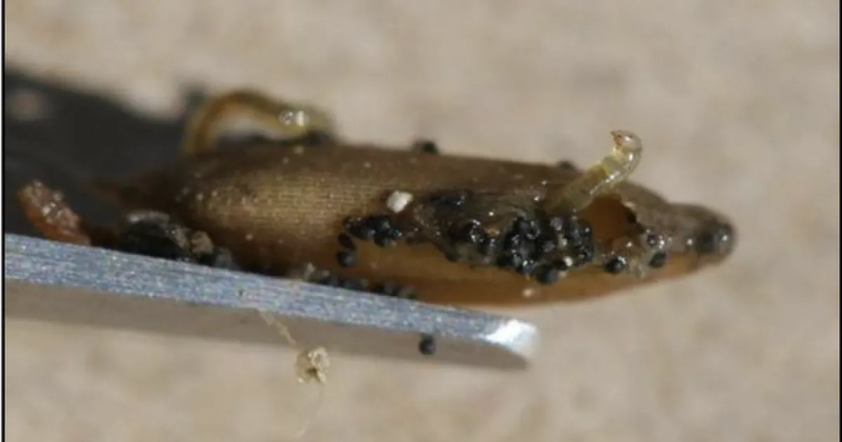 Rice seed midge tubes near injured seeds