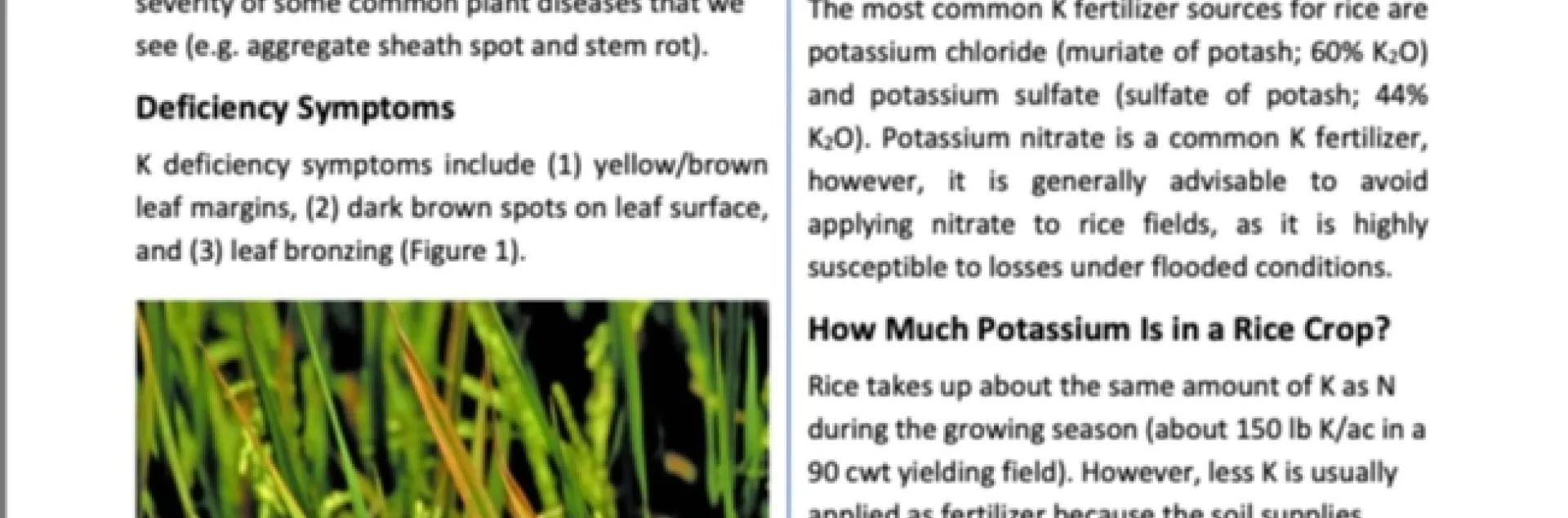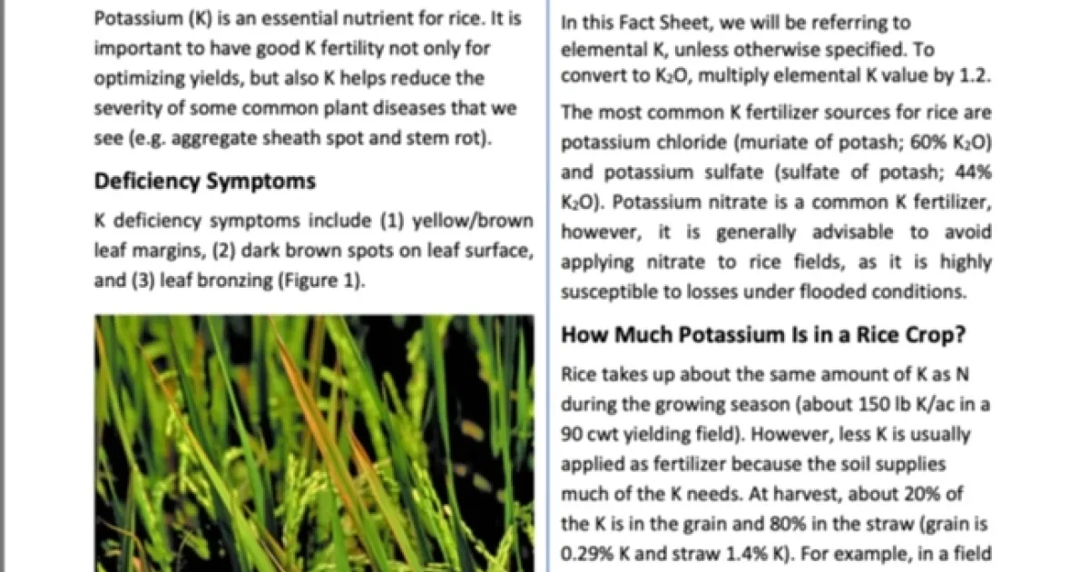 Fact Sheet #2: Managing Potassium in Rice Fields