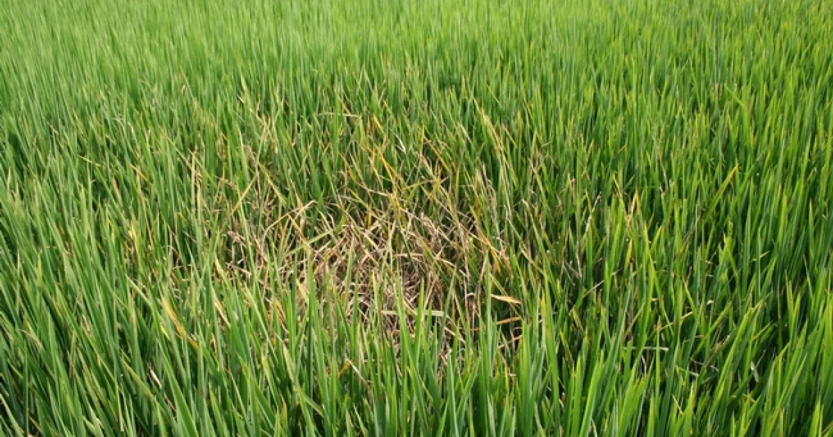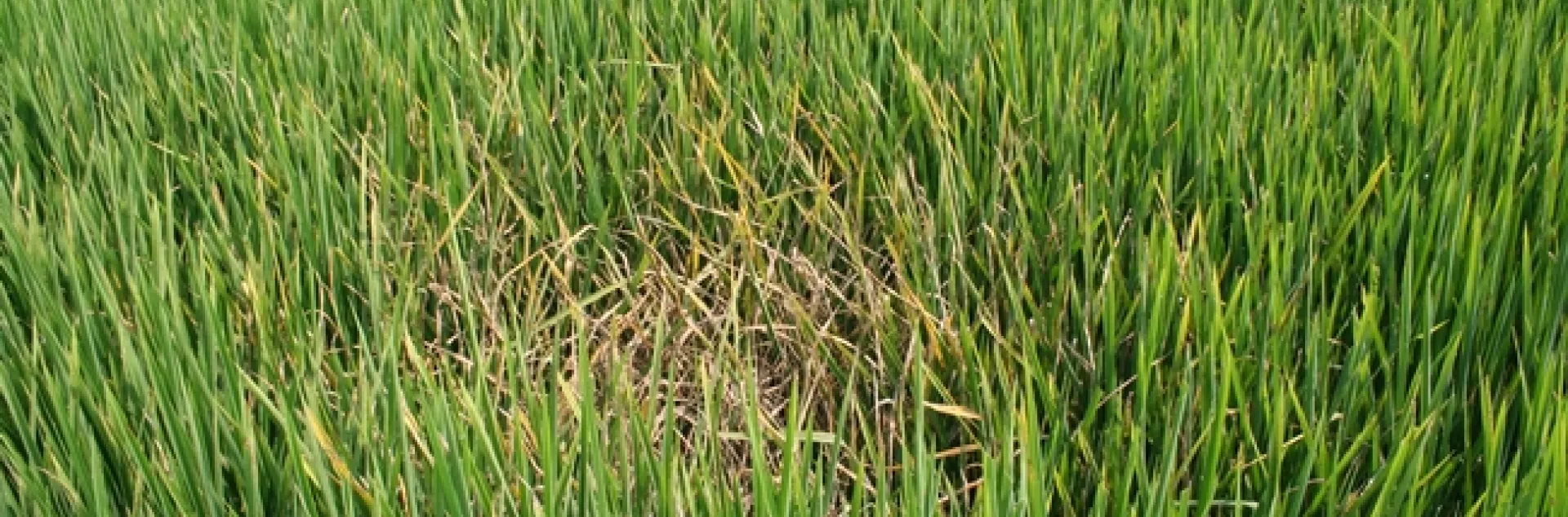 If you inspect these areas closely, the plants in the center are burned to the water, and the typical diamond shaped lesions can be found in the leaves of surrounding plants.