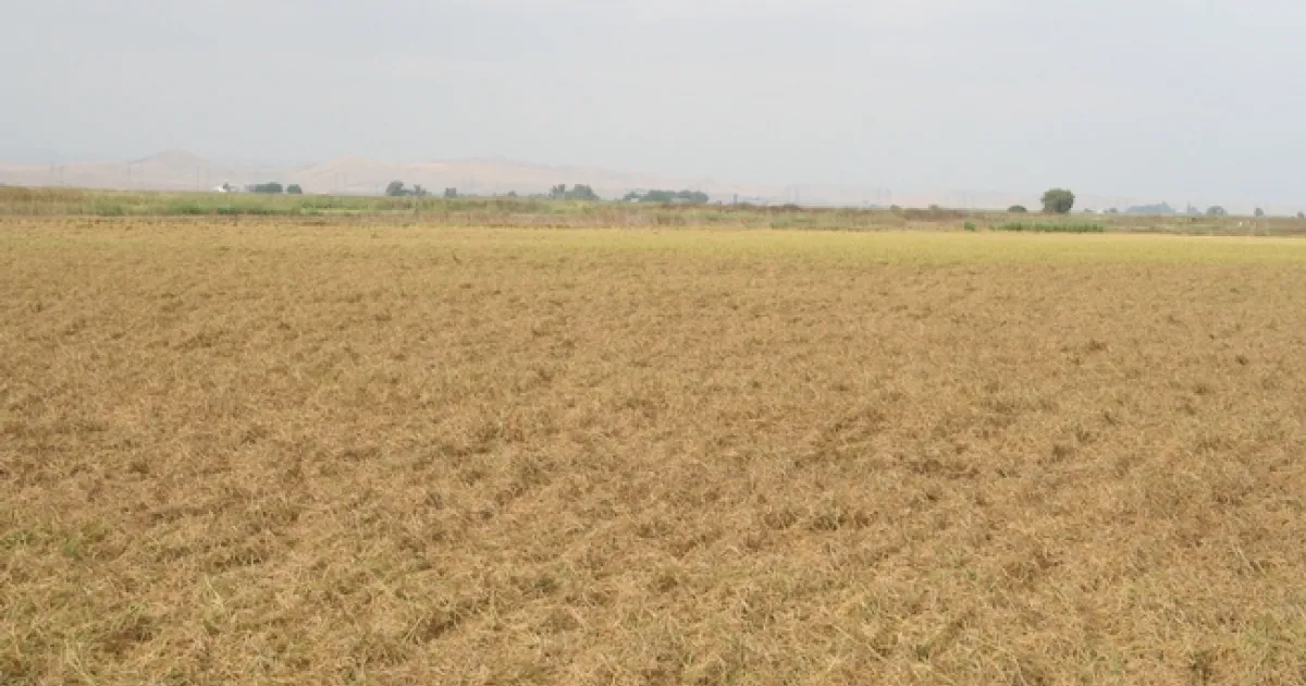 After the water was drained, plants in the affected area seemed to burn down and dry much quicker than the rest of the field. Much of the rice was down.