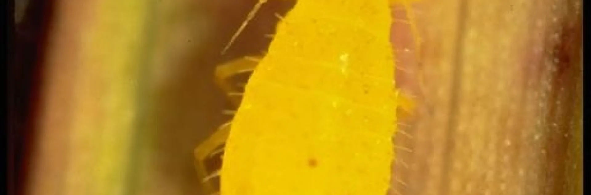 While scouting for blast, a PCA noticed some yellow leaf tips. Close inspection revealed aphids. He got a little worried since he's never seen aphids on rice during his long career. They turned out to be yellow sugarcane aphid. These aphids are common in small grains like wheat and barley, and in corn, so it is not surprising that they can be found feeding on rice. Actually, they are considered a pest in southern rice, where they feed on rice during the seedling stage.