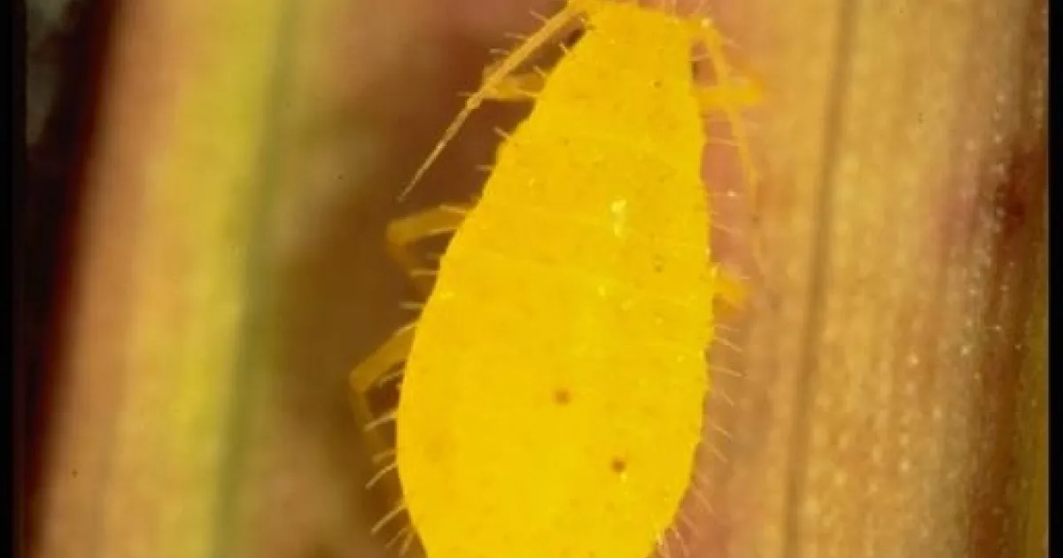 Yellow sugarcane aphid injects a toxin into rice plants during feeding that causes the foliage to become reddish.